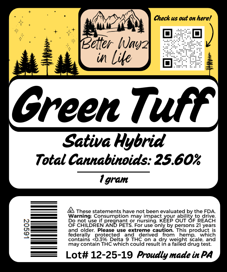 Green Tuff is ideal for those looking for a daytime strain that feels motivating without feeling overstimulating.